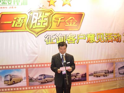 安徽江淮客車有限公司副董事長李永祥會上表示,“舒適更需要理‘油’”是江淮啟動2008年節(jié)油萬里行品牌活動的新篇章,他告訴大眾,舒適是需要理由的,同時也引導(dǎo)旅客如何選擇并去享受舒適之旅。另一方面,也是時刻告訴大眾,舒適更需要關(guān)注節(jié)能、管理油耗,這是一個社會責(zé)任,需要我們每個人拿出行動來,不管是制造者,還是購買者與使用者?!耙徽Z勝千金”客戶意見征詢活動發(fā)布會的目的是從終端需求開始,集思廣益,用大眾的智慧來制造適合時代需求的客車,同時塑造江淮客車品牌價值的更高境界。李永祥副董事長也希望這樣一個美好的愿望能夠在行業(yè)領(lǐng)導(dǎo)、嘉賓以及新聞界朋友的共同參與下啟動一個積極參與、不斷開拓的新征程。