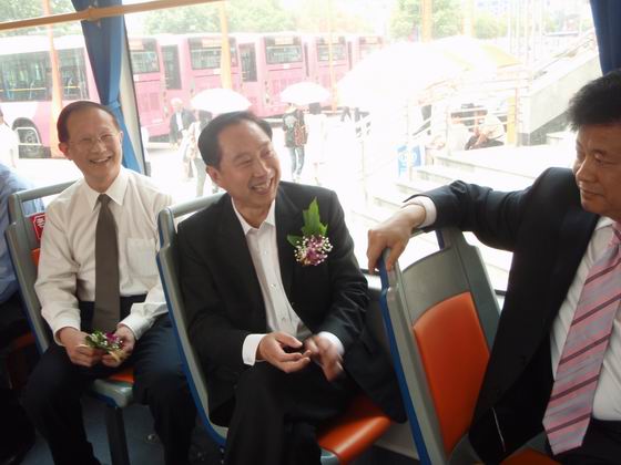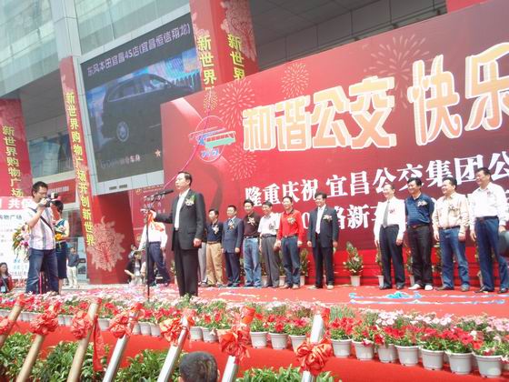 伴隨著宜昌市人民政府王宏強副市長鳴發(fā)的一聲響亮的發(fā)令槍,30臺全新的100路綠色環(huán)保公交客車整裝出發(fā)。它的第一批乘客是來自宜昌市委、市政府、夷陵區(qū)委、區(qū)政府、宜昌市交通局、財政局、國資委等政府部門和宜昌市直屬單位的領(lǐng)導和嘉賓。