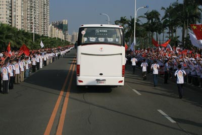 火炬?zhèn)鬟f過程中,當(dāng)一輛輛大金龍“龍威”客車駛過時(shí),我相信,不少廈門市民會(huì)有一種自豪感——?dú)v經(jīng)20載,廈門精心培育的這張城市名片,又一次在世人面前展現(xiàn)其風(fēng)采。