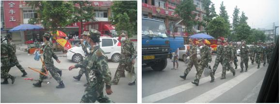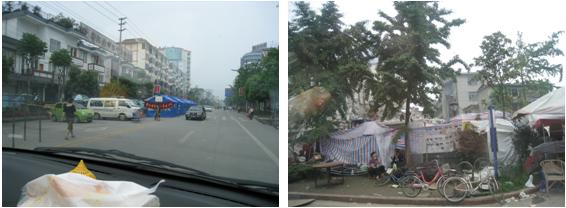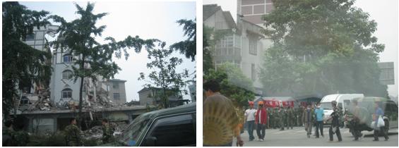 整個(gè)城市滿目瘡痍,95%以上的平房倒塌,90%的樓房在多次余震中也危在旦夕。道路已基本暢通,兩側(cè)搭建的帳篷收容了眾多無家可歸的市民。軍人、武警戰(zhàn)士正在幫助市民生產(chǎn)自救,一輛輛送飯車,賑災(zāi)車正向受災(zāi)群眾發(fā)放午餐和物質(zhì)。