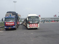 一路上來來往往的大多都是貼有紅色標(biāo)語的賑災(zāi)車,大家微笑著相互揮手致意。所經(jīng)過的服務(wù)站都設(shè)置了專為抗震救災(zāi)車輛提供免費(fèi)食物和礦泉水的服務(wù)點和災(zāi)區(qū)交通路線咨詢臺,服務(wù)人員的周到熱情讓我們倍感溫暖!下午2點55分,我們到達(dá)川渝交界的收費(fèi)站,收費(fèi)站工作人員告訴我們,賑災(zāi)車輛免交過路過橋費(fèi),主動向我們每輛車提供“四川省高速公路路網(wǎng)示意圖”,一路上,我們欣慰地看到所有的收費(fèi)站都設(shè)置了賑災(zāi)車輛綠色通道。