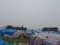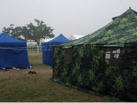 綿陽機(jī)場附近的帳篷區(qū)和等待命令的武警戰(zhàn)士