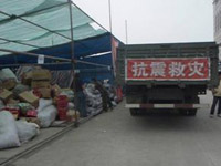 等待交接的抗震救災(zāi)物資車 簡易的物資倉庫