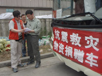 他向我們介紹到,“收到全國各地運送來的賑災(zāi)物資后,我們都連夜送往綿竹和什邡,每天還有很多捐贈個人送來各種急需物資,我們也立即分發(fā)到災(zāi)區(qū)。有全國人民的愛,我們一定會打贏這場戰(zhàn)役!”楊部長疲憊的臉上露出了一絲笑容。