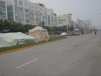一位來自西南科技大學(xué)志愿者告訴筆者,因為余震不斷發(fā)生,綿陽的所有大學(xué)都已經(jīng)放假,很多同學(xué)申請來做了志愿者,雖然這些工作都很簡單,但也意義非凡?!敖o予別人幫助的方式有很多,最平常的也能表達真誠?!边@位名叫王立的志愿者一邊和筆者攀談,一邊繼續(xù)手里的工作。他和他的同學(xué)都已經(jīng)連續(xù)工作了好幾天,困了,就在旁邊打個盹。“我們的人手十分有限。”王立向筆者指著馬路旁邊等待著交接的排隊的貨車說:“很多車都是長途跋涉馬不停蹄趕到綿陽,大家都希望這些物資能早一點送到災(zāi)民的手中,我們做的這點工作不算什么?!?/P>
