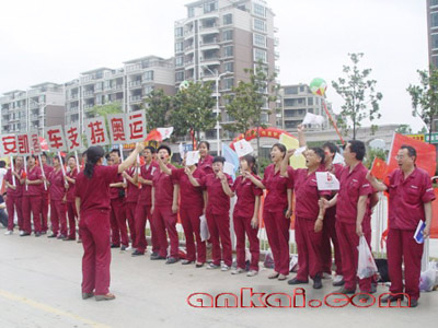 28日凌晨四點四十五分,安凱員工從公司整裝待發(fā),驅(qū)車趕往本次圣火合肥傳遞的第三站:政務(wù)廣場。在大家的臉上看不出絲毫的疲倦,取而代之的是興奮與激動,大家都能為親眼目睹奧運圣火而感到光榮和自豪。在來到指定地點后,大家整齊列隊,熱情高漲,一遍又一遍的演練著口號,公路兩旁的群眾被我們的熱情所感染,也加入到吶喊的隊伍中來,頓時口號聲此起彼伏,響徹整個政務(wù)廣場。