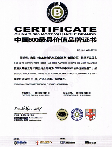 6月2日,世界品牌實(shí)驗(yàn)室(World Brand Lab)在北京發(fā)布了2008年(第五屆)《中國(guó)500最具價(jià)值品牌排行榜》。在這份基于財(cái)務(wù)分析、消費(fèi)者行為分析和品牌強(qiáng)度分析而獲得的中國(guó)品牌國(guó)家隊(duì)陣容中,海格客車(chē)首次榮登本年度最具價(jià)值品牌榜(排行第119位),以61.36億元的品牌價(jià)值,與宇通、金龍一起名列行業(yè)三甲,這是海格客車(chē)?yán)^去年榮登中國(guó)名牌榜之后,躍升至又一個(gè)嶄新坐標(biāo),顯示了其品牌蓬勃向上的張力,在中國(guó)客車(chē)行業(yè)品牌史上再次揮灑出濃墨重彩的一筆。