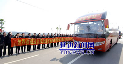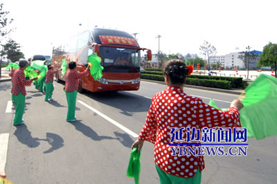 10臺豪華大巴緩緩駛進延吉