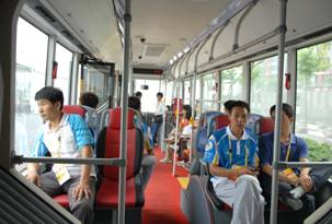 2008北京奧運(yùn)會在億萬國人的期盼中到來了,北京向全世界敞開了大門,據(jù)不完全統(tǒng)計(jì),截止8月7日 ,北京已迎來了205個國家和地區(qū)的代表團(tuán)和記者兩萬余人。為確保奧運(yùn)期間出行的方便、快捷,奧組委在全國范圍內(nèi)調(diào)集大批量客車入京服務(wù),中通純電動客車“萬里挑一”成為唯一能夠在鳥巢下運(yùn)行的車輛,已于5月19日上線運(yùn)行,在近3個月的運(yùn)行過程中,憑借穩(wěn)定的車輛性能和周到的服務(wù)得到奧組委的一致好評,據(jù)此,7月30日 ,奧組委向中通客車公司提出再增加兩輛客車的要求,此次增加的車輛為中通LCK6180BRT客車,該車長18米 ,寬2.54米 ,可容納175人,是中通客車引入歐系博發(fā)客車技術(shù),以節(jié)能降耗為核心理念設(shè)計(jì)的高技術(shù)、低能耗、低排放鉸鏈?zhǔn)娇蛙嚒?