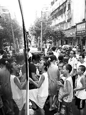 憤怒的人群沖進(jìn)交警隊(duì)長尹和平家里討說法,尹的孩子被嚇得“哇哇”大哭,好幾天回不過來神。
