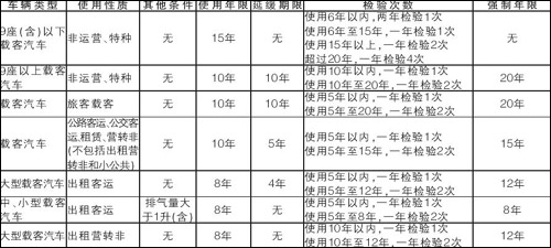 西安機(jī)動(dòng)車報(bào)廢年限和檢驗(yàn)次數(shù)一覽表