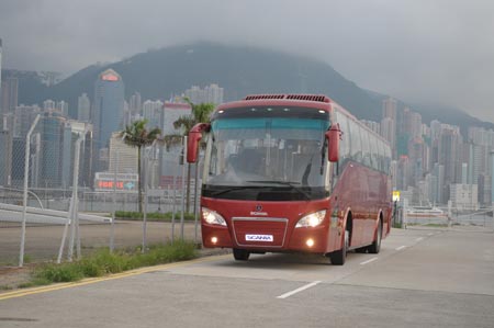 截至2008年12月上旬,已有價(jià)格在200萬(wàn)元以上的100多輛斯堪尼亞•海格豪華車交付客戶,其中一半出口到歐洲、非洲、中東和東南亞等國(guó)家和地區(qū)。2008年7月1號(hào),海格客車依據(jù)歐洲最新頒布的(ECE)R66-01法規(guī),在重慶國(guó)家客車質(zhì)量監(jiān)督檢驗(yàn)中心成功地進(jìn)行了12米斯堪尼亞•海格A80的側(cè)翻試驗(yàn),順利拿到了歐盟認(rèn)證。小鮑告訴筆者,在國(guó)外,斯堪尼亞會(huì)利用其全球銷售網(wǎng)絡(luò)銷售斯堪尼亞•海格豪華客車。
