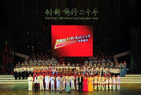 最后,伴隨著所有嘉賓的濃濃祝福,承載著金龍人對未來熱情,十六位主禮嘉賓共同上臺為大金龍20周年華誕剪彩,整個慶典圓滿閉幕。
