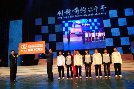 18日晚,在廈門嘉庚體育館,一場精心準(zhǔn)備的慶祝晚會將大金龍20周歲的華誕推向了高潮。會上,大金龍董事長孫建華、總經(jīng)理江世煌為海內(nèi)外典型客戶、經(jīng)銷商、服務(wù)商、配套商及員工代表100人頒發(fā)了金牌,以表達(dá)20年來共同合作走過歷程的感謝。除此之外,由大金龍在2008發(fā)現(xiàn)之旅新疆站發(fā)起的“愛心接力”活動再次舉行,大金龍總經(jīng)理代表大金龍再次向四川地震災(zāi)區(qū)10位孤兒捐贈愛心款10萬元,愛心與祝福感動了在場的所有觀眾。