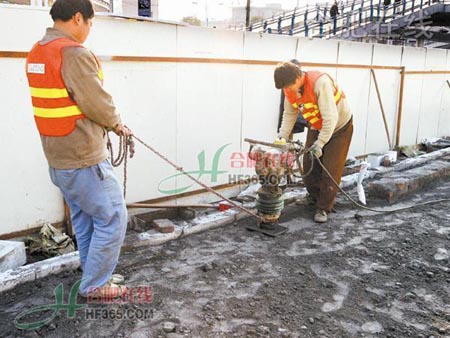徽州大道快速公交站臺日前開始建設(shè),工人們在站鋪設(shè)大理石側(cè)石,同時將站臺上的基礎(chǔ)層夯實(shí),該道路中央站臺建成之后,市民可以從人行天橋直達(dá)乘車點(diǎn)。