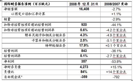 以固定匯率計算,米其林集團的2008年凈銷售額增加1.1%,扣除非經(jīng)常性項目前的經(jīng)營利潤率達(dá)到5.6%
