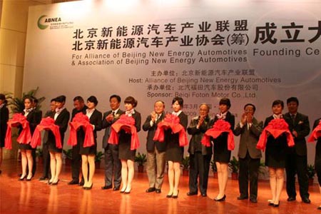 2009年3月13日,中國第一個新能源汽車產業(yè)聯(lián)盟––北京新能源汽車產業(yè)聯(lián)盟正式宣告成立??萍疾俊⒈本┦邪l(fā)改委、北汽控股公司、福田汽車、北京公交集團、中科院電工所、中信國安、清華大學等單位有關領導出席了會議。會議上選舉產生了北京新能源汽車產業(yè)聯(lián)盟組織機構,并通過了章程、議事規(guī)則等組織文件。當天下午,同時舉行了“福田歐V新能源客車示范運營城市交流會”和“福田歐V全承載客車推廣交流會”,集中展示和交流了新能源客車領頭羊––福田歐V在新能源汽車規(guī)模化、產業(yè)化發(fā)展工作中取得的經(jīng)驗和成果。特別值得一提的是,到會的公交及旅游系統(tǒng)歐V新能源客車用戶代表,對歐V新能源客車在實際商業(yè)運營中的優(yōu)異表現(xiàn)給予了高度的好評。