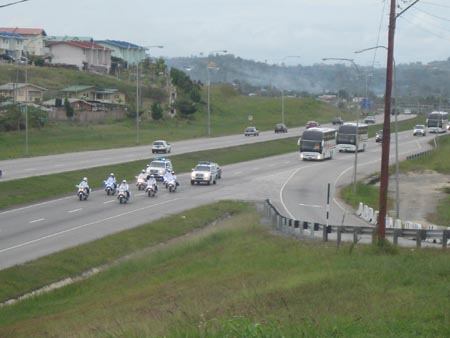 美洲峰會警車護衛(wèi)的海格客車車隊