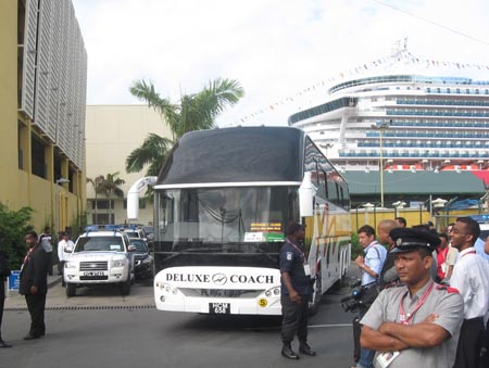 峰會官方對本次會議會務(wù)的交通十分重視,特立尼達和多巴哥的交通部長 Mr Colm Imber親自試駕駛海格客車,檢驗整車的性能,對海格客車的車輛狀況表示滿意。