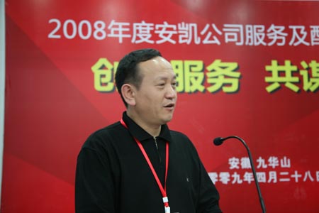 2009年4月28日,“創(chuàng)新服務(wù) 共謀發(fā)展”2008年度安凱服務(wù)及配件工作會(huì)議在安徽九華山隆重召開。大會(huì)上,技術(shù)服務(wù)部部長(zhǎng)劉家明做了08年度工作報(bào)告,總結(jié)了08年的工作狀況,并且對(duì)09年的服務(wù)及配件工作提出設(shè)想和計(jì)劃。