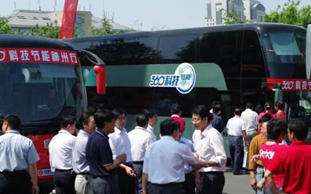 5月 8日,中通客車2009年全國(guó)巡展在山東濟(jì)南正式啟動(dòng),山東省道路運(yùn)輸協(xié)會(huì)會(huì)長(zhǎng)龔學(xué)智等省市領(lǐng)導(dǎo)以及來(lái)自山東交運(yùn)集團(tuán)、濟(jì)南長(zhǎng)運(yùn)、濟(jì)南公交總公司以及魯北地區(qū)眾多嘉賓共同出席了啟動(dòng)儀式。中通客車總經(jīng)理時(shí)洪功、副總經(jīng)理賈開(kāi)潛與與會(huì)領(lǐng)導(dǎo)和嘉賓一同為啟動(dòng)儀式揭幕。本次巡展活動(dòng)的主題為“360°科技節(jié)能神州行”,通過(guò)新品揭幕、技術(shù)交流、客戶懇談等活動(dòng),向客戶宣傳中通客車先進(jìn)的節(jié)能理念和技術(shù)。