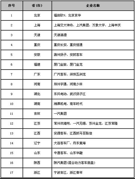 表3.新能源客車(chē)生產(chǎn)企業(yè)
