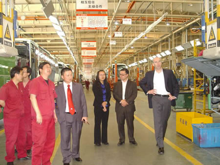 5月6日上午,阿文美馳汽車工業(yè)公司亞太區(qū)總裁提姆•博威斯、中韓地區(qū)總裁杰森•愛普特一行4人來安凱考察訪問。安凱股份公司董事長王江安、副總經(jīng)理熊良平、總經(jīng)理助理董剛陪同考察。