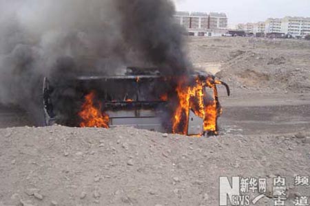 據(jù)司機(jī)介紹:該車是從寧夏大武口至臨河的長途客車,著火時車上有26名司乘人員。當(dāng)該車從寧夏大武口出發(fā)行駛在烏海市海勃灣區(qū)立交橋下時,有乘客反映車上有濃烈的烤膠皮味,車主于是下車觀察,看到車的右后尾部已經(jīng)冒出大量白煙,于是趕快讓乘客下車,多虧發(fā)現(xiàn)的早,才沒有造成人員傷亡。
