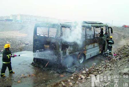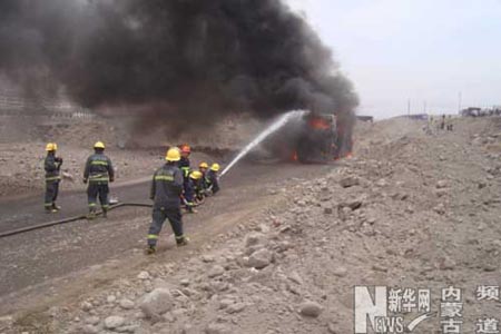 烏海一長途客車起火 26名司乘人員全部脫險(圖文)