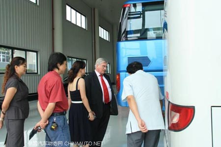 盧克(中)仔細(xì)參觀恒通客車并聽(tīng)取介紹