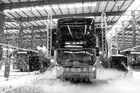2009年6月30日,國(guó)內(nèi)首輛13.7米全承載低地板雙層豪華公交車,在濟(jì)南青年汽車有限公司總裝車間下線,這輛雙層豪華公交車是濟(jì)南青年汽車有限公司生產(chǎn)的第一輛公交車,該車下線標(biāo)志著該公司公交車項(xiàng)目正式投產(chǎn)。