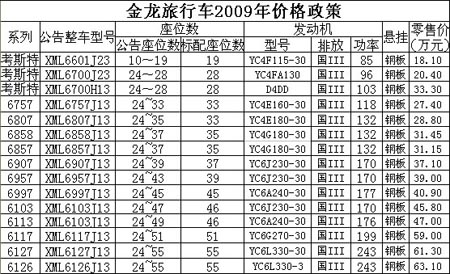 金龍旅行車2009年價格匯總