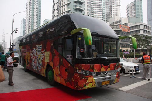 作為活動(dòng)主要贊助商之一,黃海汽車予以高度重視,對(duì)車輛的選型、性能以及司機(jī)的配備都做了精心安排。在整個(gè)活動(dòng)過(guò)程中,黃海汽車承擔(dān)著十余個(gè)城市中主題車隊(duì)巡游和大巴路演的重任,為活動(dòng)提供兩輛大型客車(DD6129K02 DD6119K01)和一輛SUV城市越野汽車(DD6470-1),巡演途經(jīng)天津、北京、濟(jì)南、南京、杭州、深圳、武漢等十幾個(gè)城市,全程10000公里左右,歷時(shí)近三個(gè)月。