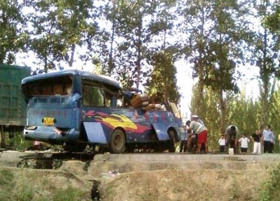昨日16時(shí)47分,一網(wǎng)友首先發(fā)帖,稱(chēng)在河間沙洼發(fā)生了重大車(chē)禍,一輛斯太爾貨車(chē)(也有人稱(chēng)為歐曼貨車(chē))與客車(chē)相撞,出動(dòng)了20余輛救護(hù)車(chē)。