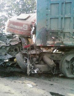 ■大貨車(chē)車(chē)頭被撞爛