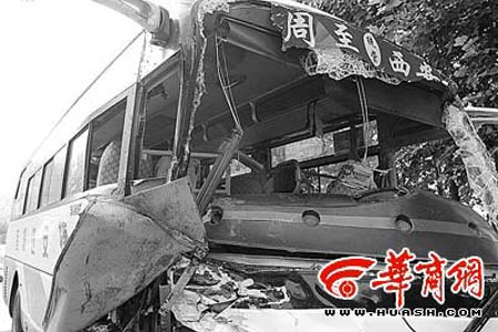 周至開往西安客車與吊車相撞側(cè)翻 18人受傷(圖文)