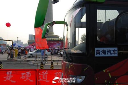 據(jù)了解,這輛搶了很多鏡頭的豪華大巴正是黃海汽車贊助天津衛(wèi)視《聲震八方》用以巡游、路演的服務(wù)用車,該車曾榮獲2009年4月北京交通展“最佳公路客車獎(jiǎng)”,并成功出口中東,走向世界。本次活動(dòng),黃海汽車共贊助兩輛豪華旅游大巴和一輛新款SUV城市越野車,并將陸續(xù)巡游天津、北京、濟(jì)南、南京、杭州、井岡山、深圳、武漢、成都、西安、延安、沈陽等12個(gè)城市。