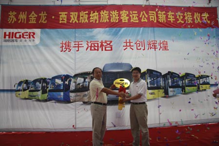 2009年6月16日,云南西雙版納旅游客運汽車有限公司總經(jīng)理朱雨田、副總經(jīng)理唐彥生、總經(jīng)理助理劉澤新一行來到海格客車廠,提取2009年預(yù)定的72臺中型客車。緣何西雙版納旅游客運在大環(huán)境不利的背景下采購如此大批量的客車?為此,專訪了朱總一行: