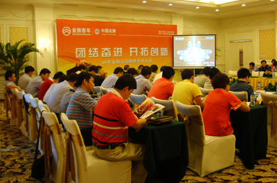 日前,廈門金旅在湖南長沙舉辦了主題為“團(tuán)結(jié)奮進(jìn) 開拓創(chuàng)新”的2009年中銷售大會(huì)。來自全國各省的區(qū)域負(fù)責(zé)人與公司高層領(lǐng)導(dǎo)、銷售公司相關(guān)領(lǐng)導(dǎo)齊聚一堂,共同對上半年的市場進(jìn)行總結(jié)并一起探討下半年的營銷策略。