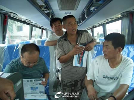 在營(yíng)口客運(yùn)公司,黃??蛙?chē)的到來(lái)受到了廣大個(gè)體車(chē)主的歡迎,眾多個(gè)體車(chē)主圍上黃??蛙?chē),在觀看過(guò)程中眾多個(gè)體車(chē)主不斷向黃海工作人員提出問(wèn)題,其中客車(chē)配置、車(chē)長(zhǎng)、座位數(shù)、油耗、性能、價(jià)位等都是眾多車(chē)主所關(guān)注的問(wèn)題,黃海客車(chē)工作人員對(duì)諸多問(wèn)題一一做出解答,忙的不亦樂(lè)乎。