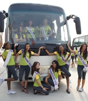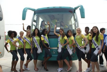 8月25日9時,2009國際旅游小姐車隊抵達制造二部,在熱烈的歡迎氛圍中,60余名國際佳麗款款下車,踏上紅地毯,走進少林客車。精心的布置、隆重的場面、熱情的人群讓佳麗們步入少林客車的一瞬間,就被少林人的真摯熱忱感動,不時向兩旁的歡迎人群揮手致意。