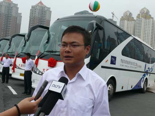 安凱客車(chē)市場(chǎng)部經(jīng)理徐迎春接受記者采訪(fǎng)