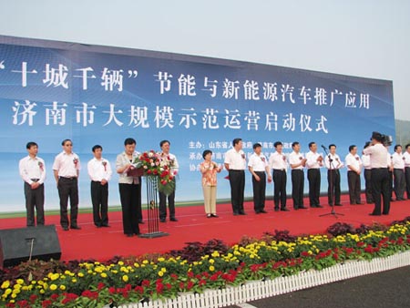 9月18日上午,由山東省人民政府和濟南市人民政府主辦,濟南市節(jié)能與新能源汽車示范推廣試點領(lǐng)導小組、中通客車控股股份有限公司、濟南市公交總公司以及濟南市電動汽車運營公司協(xié)辦的“國家‘十城千輛’節(jié)能與新能源汽車推廣應用濟南市大規(guī)模示范運營啟動儀式”在濟南龍奧大廈西廣場舉行。