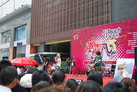 在9月16日—20日,這輛黃??蛙嚨囊魳?lè)大巴載著天津衛(wèi)視“聲震八方”節(jié)目組的全體人員暢游了沈陽(yáng)的故宮、大帥府等名勝景點(diǎn),并于19日下午2:30在沈陽(yáng)最為繁華的步行街——太原街上舉辦了一場(chǎng)大型巡回音樂(lè)節(jié)活動(dòng)。