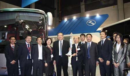2009年10月16日,兩年一屆的世界客車聯(lián)盟歐洲(BAAV)展覽會(huì)在比利時(shí)科特耐克開幕,本屆展會(huì)共有來自29個(gè)國家的389家展商參展,其中客車制造企業(yè)70多家,包括大金龍?jiān)趦?nèi)的多家中國客車制造商也出現(xiàn)在展會(huì)上。值得一提的是,作為中國客車企業(yè)進(jìn)軍海外的代表,大金龍已是連續(xù)第三次參加比利時(shí)車展,并且首度奪得BUS BUILDER OF THE YEAR 2010(2010年度最佳客車制造商大獎(jiǎng)),金龍汽車集團(tuán)副總經(jīng)理、大金龍董事謝思瑜出席頒獎(jiǎng)儀式,并且以獲獎(jiǎng)代表身份參加了次日舉行的CHINADAY主題論壇,向媒體詳細(xì)介紹了大金龍公司及中國新能源客車研發(fā)現(xiàn)狀。