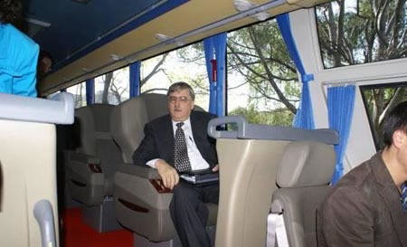 世界銀行副行長(zhǎng)詹姆斯.亞當(dāng)試乘豪華純電動(dòng)中置客車