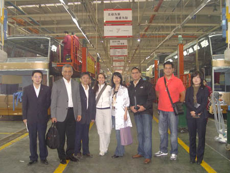 客人們一行首先興致勃勃地參觀了安凱豪華客車生產(chǎn)線,國際業(yè)務(wù)部相關(guān)人員介紹了安凱豪華客車的生產(chǎn)流程和制造工藝,客人們聽后頻頻點(diǎn)頭,對安凱客車高端的制造技術(shù)給予好評。隨后客人們參觀了客車二廠公交車生產(chǎn)線,詳細(xì)咨詢了公交車的技術(shù)參數(shù)和整車配置,以及市場定位等問題,國際業(yè)務(wù)部人員對客人們的提問作了詳細(xì)解答。