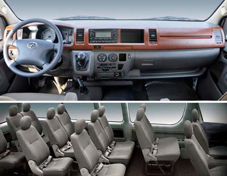 三菱和豐田技術(shù)的發(fā)動機(jī)動力,使操控性能優(yōu)越。提供多種座椅位置布局(10-15座位),載送乘客和行車都同樣舒適方便,后排折疊座椅可任意調(diào)節(jié),乘載空間做到了最大化。