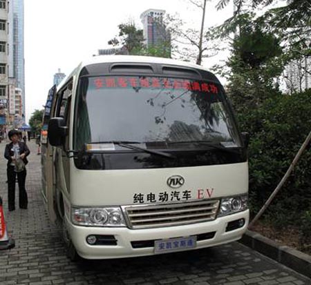 與此同時,除了此兩款即將實用的新能源汽車,更引人注目的則是負責實地接待任務的安凱純電動服務車,據(jù)介紹,安凱這款純電動中巴服務車,是安凱自主研發(fā)的,國內(nèi)首款純電動中巴車,此款車在不久前的達沃斯論壇上就出色的完成了國家領導人和國際嘉賓的接待任務,是一款已經(jīng)進入實用化的純電動車型,在本屆高交會大力提倡“綠色環(huán)保服務”的理念下,高交會攜手安凱純電動客車,營造了一個節(jié)約能源、環(huán)保舒適的展會環(huán)境,為前來參觀的專業(yè)觀眾與相關企業(yè)帶來了最真實的綠色新能源親身體驗。