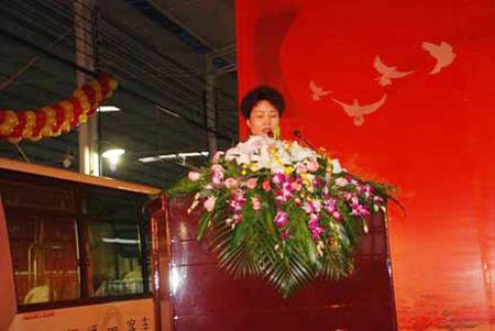 馬明媛副秘書長首先代表重慶市政府辦公廳向恒通客車的全體領(lǐng)導(dǎo)和廣大員工同志們表示親切的慰問和熱烈的生日的祝賀,向關(guān)心支持恒通客車的市級各部門、渝北區(qū)政府和來自全國各地交通客運(yùn)企業(yè)、汽車配套企業(yè)的領(lǐng)導(dǎo)和來賓表示了衷心的感謝。